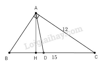 \( \Rightarrow AH = {{AB.AC} \over {BC}} = {{9.12} \over {15}} = 7,2\,\left( {cm} \right)\)
