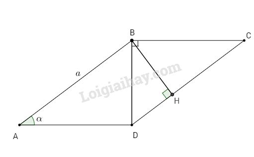 Bài 3. Cho hình bình hành ABCD có BD vuông góc với BC. Biết \(AB = a\), \(\widehat A = \alpha .\) Tính diện tích hình bình hành ABCD theo a và α.