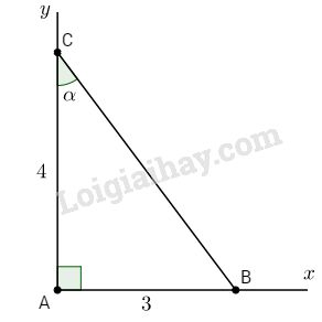 Xét tam giác ABC vuông tại A có \(\tan \alpha  = \tan C \)\(= \dfrac{{AB}}{{AC}} = \dfrac{3}{4} = 0,75\)