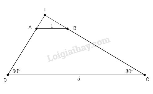 Bài 2. Cho hình thang ABCD (AB // CD) có \(AB = 1cm\), \(CD = 5cm\) và \(\widehat C = 30^\circ ,\widehat D = 60^\circ \). Tính diện tích hình thang ABCD.