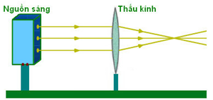 + Một chùm tia tới song song với trục chính của thấu kính hội tụ cho chùm tia ló hội tụ tại tiêu điểm của thấu kính.