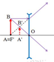 Câu 8: Vật AB có độ cao h được đặt vuông góc với trục chính của một thấu kính phân kì. Điểm A nằm trên trục chính và có vị trí tại tiêu điểm F. Ảnh A’B’ có độ cao là h’ thì