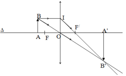 – Vẽ tia tới BI song song với trục chính, tia ló đi qua B’ và cắt trục chính tại tiêu điểm F’.