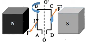 Khung dây của một động cơ điện một chiều quay được là vì hai cạnh đối diện của khung dây bị hai lực từ ngược chiều tác dụng.