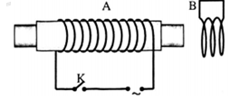 Khi K đóng dòng điện xoay chiều chạy vào cuộn dây của nam châm điện tạo ra một từ trường biến đổi. Các đường sức từ của từ trường trên xuyên qua tiết diện S của cuộn dây B biến đổi. Do đó trong cuộn dây B xuất hiện dòng điện cảm ứng.