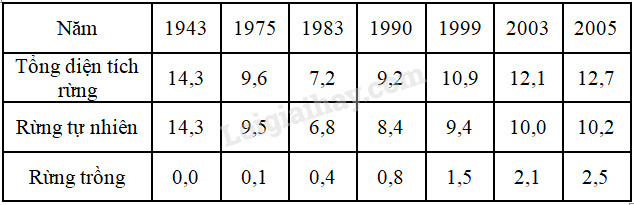 Câu 11: Dựa vào bảng số liệu  sau đây về diện  tích rừng của nước ta qua  một số năm
