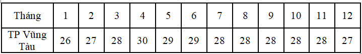 Tính nhiệt độ trung bình các tháng trong năm của thành phố Vũng Tàu (°C)