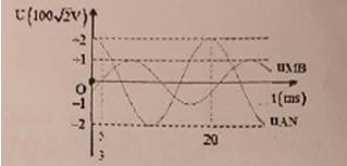 Câu 6: Cho đoạn mạch AB không phân nhánh gồm đoạn mạch AM chứa cuộn cảm thuần, đoạn mạch MN chứa điện trở thuần và đoạn mạch NB chứa tụ điện. Đặt điện áp \(u = {U_0}\cos (\omega t + \varphi )V\) (trong đó U0, ω, φ xác định) vào hai đầu mạch AB. Khi đó điện áp tức thời hai đầu đoạn mạch AN, MB lần lượt là uAN và uMB được biểu thị ở hình vẽ. Điện áp U0 gần với giá trị nào nhất sau đây?