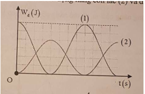 Câu 17: Hai con lắc lò xo dao động điều hòa có động năng biến thiên theo thời gian như đồ thị. Vào thời điểm thế năng hai con lắc bằng nhau thì tỉ số động năng con lắc (2) và động năng con lắc (1) là