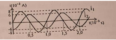 Câu 37: Hai mạch dao động điện từ LC lí tưởng đang có dao động điện từ tự do với các cường độ dòng điện tức thời trong hai mạch là i1 và i2 được biểu diễn như hình vẽ. Tổng điện tích của hai tụ điện trong hai mạch ở cùng một thời điểm có giá trị lớn nhất bằng