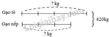 – Tìm số gạo mỗi loại bán được theo dạng toán tìm hai số khi biết tổng và tỉ số của hai số đó.