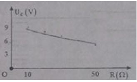 Câu 29: Một học sinh làm thí nghiệm để đo điện dung của tụ điện. Học sinh này mắc nối tiếp R với tụ điện C thành mạch điện AB, trong đó điện trở R có thể thay đổi được. Đặt vào hai đầu AB một điện áp xoay chiều \(u = 10\sqrt 2 \cos \left( {100\pi t} \right)V\) . Kết quả thí nghiệm được biểu diễn bằng đồ thị như hình vẽ. Với UC là điện áp hiệu dụng giữa hai đầu tụ điện. Giá trị của điện dung C là