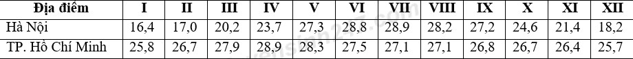 Nhiệt độ trung bình các tháng tại Hà Nội và Thành phố Hồ Chí Minh