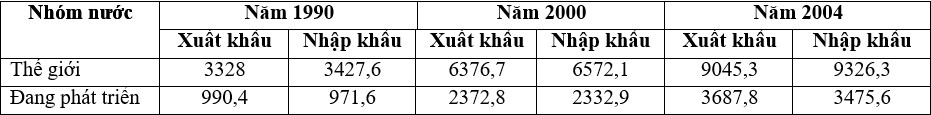 Tình hình xuất nhập khẩu của các nhóm nước trên thế giới (Đơn vị: tỉ USD)