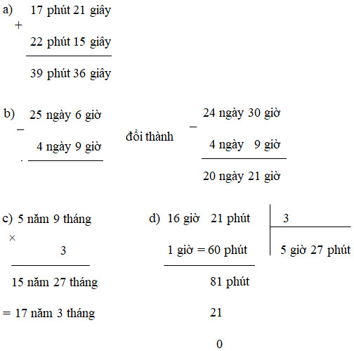 b) 25 ngày 6 giờ  – 4 ngày 9 giờ