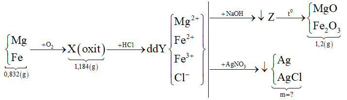 Khi cho Y phản ứng hoàn toàn với dung dịch AgNO3 dư, thu được m gam kết tủa gồm Ag và AgCl