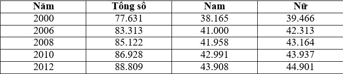 SỐ DÂN NƯỚC TA TRONG GIAI ĐOẠN 2000 ĐẾN 2012
