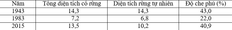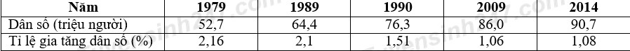 Câu 14. Cho bảng số liệu: