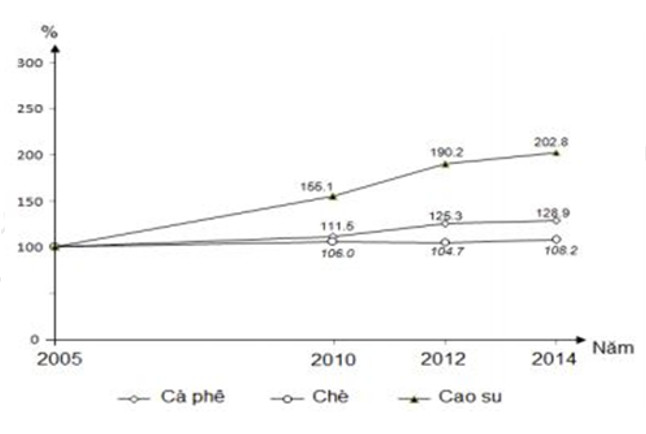 D. Diện tích gieo trồng cây cà phê, chè và cao su đều tăng.