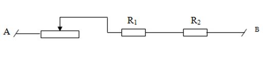 d. Mắc thêm một biến trở vào mạch AB như hình vẽ. Để công suất tiêu thụ của điện trở R1là     P1 = 2W thì biến trở phải có giá trị là bao nhiêu?