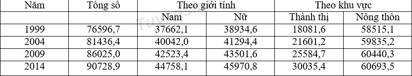 DÂN SỐ TRUNG BÌNH PHÂN THEO GIỚI TÍNH VÀ THÀNH THỊ, NÔNG THÔN CỦA VIỆT NAM