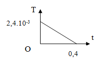 Câu 1: Một khung dây cứng, phẳng diện tích 25cm2, gồm 10 vòng dây, đặt trong từ trường đều, mặt phẳng khung dây vuông góc vuông góc với các đường cảm ứng từ. Cảm ứng từ biến thiên theo thời gian như đồ thị hình vẽ. Tính độ biến thiên của từ thông qua khung dây kể từ t = 0 đến t = 0,4s.