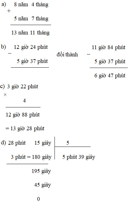 a)   8 năm 4 tháng + 5 năm 7 tháng = 14 năm 1 tháng