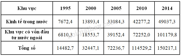 Giá trị xuất khẩu hàng hóa phân theo khu vực kinh tế nước ta giai đoạn 1995 – 2014