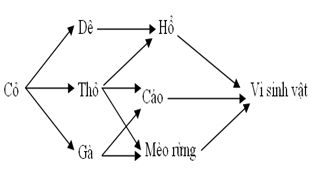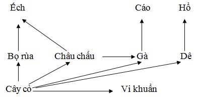 b. Thiết lập sơ đồ l­ưới thức ăn gồm các loài sau: Vi khuẩn, ếch, bọ rùa, cáo, gà, cỏ, châu chấu, dê, hổ.