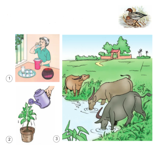 Trong cuộc sống hằng ngày, em quan sát được nước dùng cho con người, động vật như thế nào? Hàng ngày, em có uống nước lọc không?