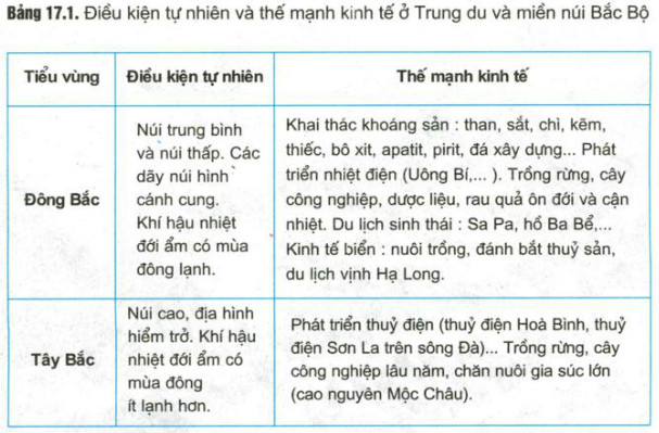 Giữa Đông Bắc và Tây Bắc có những đặc điểm riêng về điều kiện tự nhiên và thế mạnh kinh tế.