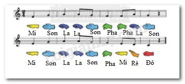Dựa vào các kí hiệu nốt nhạc bàn tay tương ứng với các nốt nhạc