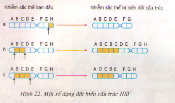 Các NST sau khi bị biển đổi (hình 22.1 a, b, c) khác với NST ban đầu