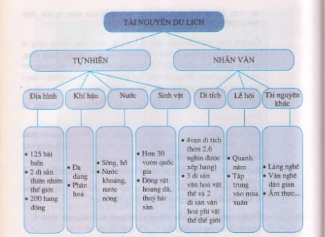 Tài nguyên du lịch bao gồm 2 nhóm: Tài nguyên thiên nhiên và Tài nguyên nhân văn.