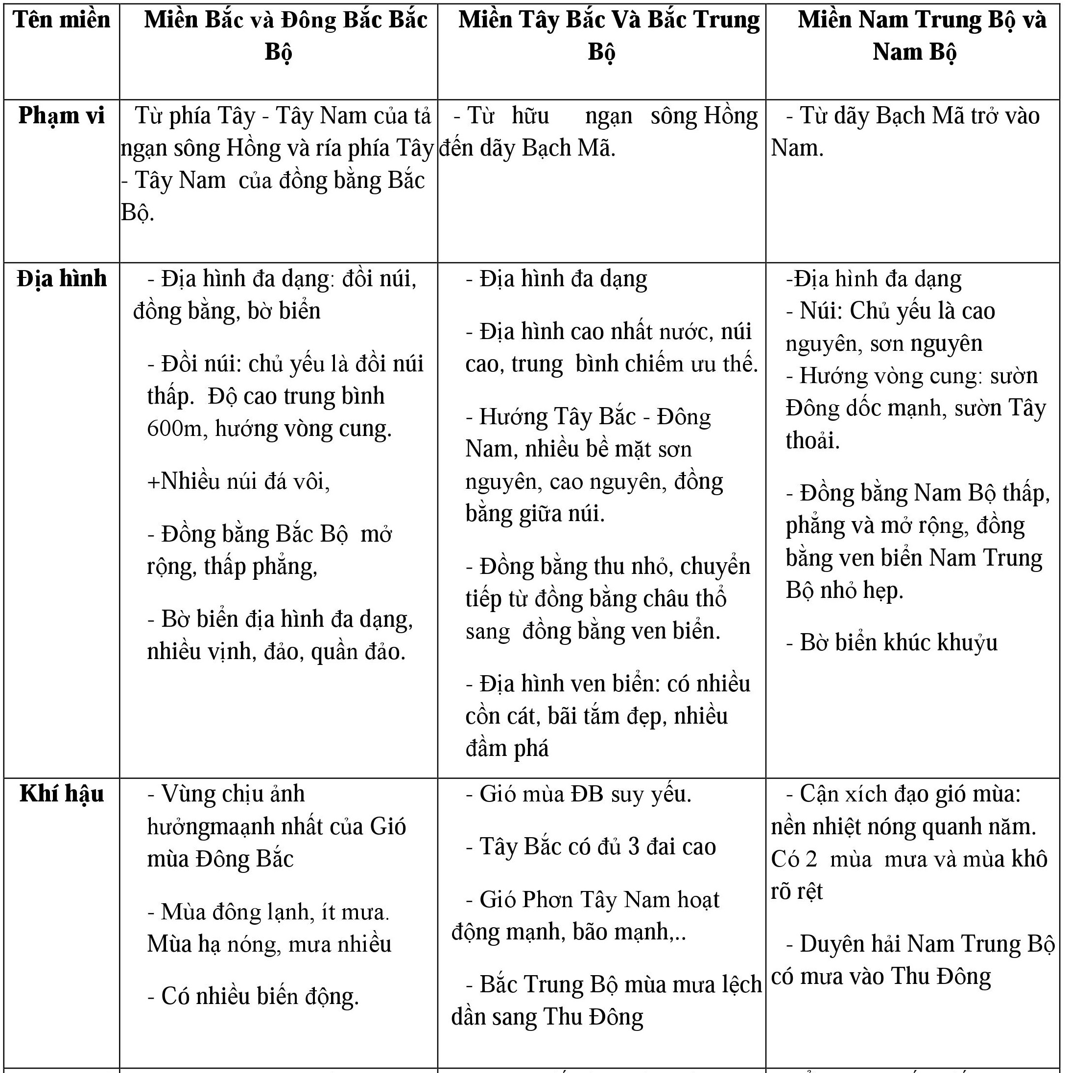 Xác định phạm vi 3 miền địa lí tự nhiên và đặc trưng cơ bản của mỗi miền về địa hình, khí hậu