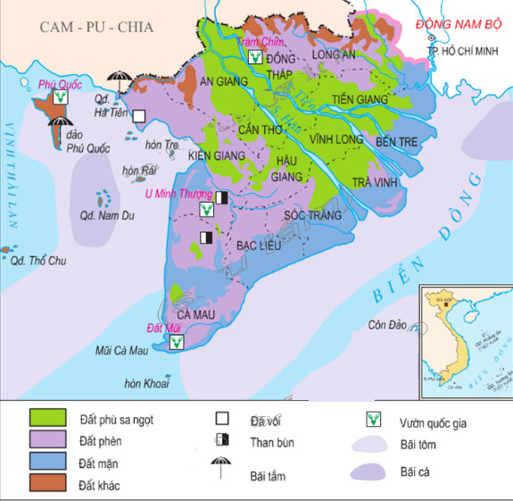 * Phạm vi lãnh thổ của Đồng bằng sông Cửu Long: nằm ở phía Nam lãnh thổ nước ta
