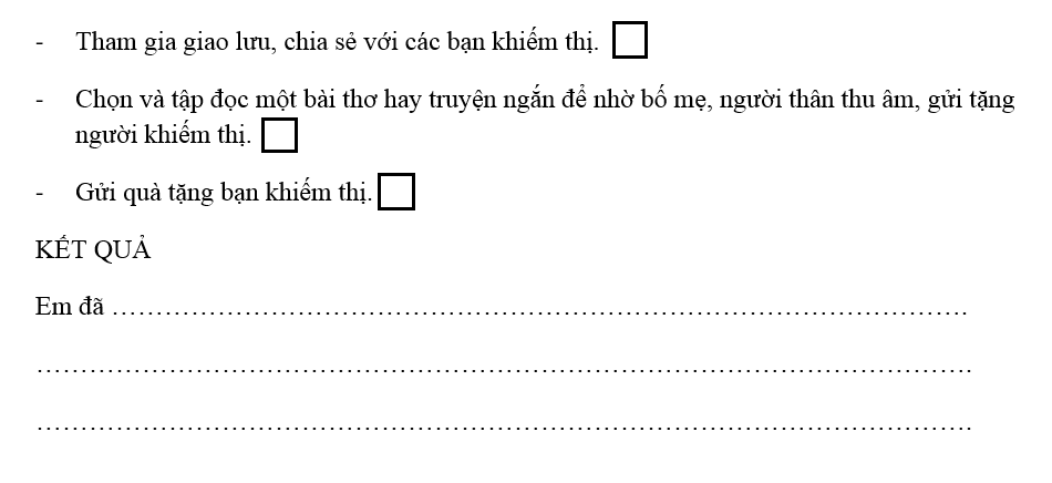 Em làm gì để chia sẻ, giúp đỡ người khiếm thị? trang 50 VBT Hoạt động trải nghiệm 2 – Kết nối tri thức