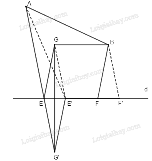 Cho đường thẳng d và hai điểm A, B cùng thuộc một nửa mặt phẳng bờ d. Hai điểm E, F thay đổi trên d sao cho \(\overrightarrow {EF} \) không đổi. Xác định vị trí của hai điểm E, F để AE + BF nhỏ nhất.