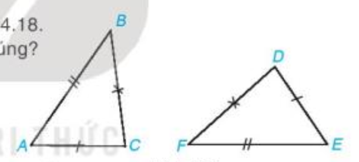 Bài 1 (4.4). Cho hai tam giác ABC và DFE như hình sau. Trong các khẳng định sau, khẳng định nào đúng, khẳng định nào sai?
