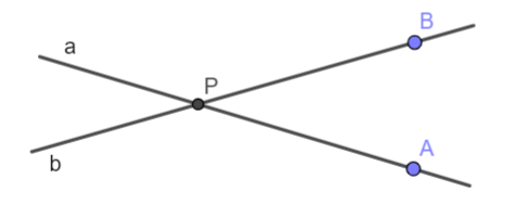 b) Điểm A thuộc đường thẳng a và không thuộc đường thẳng b.