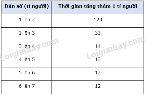 Thời gian dân số tăng thêm 1 tỉ người = Năm sau – Năm trước.
