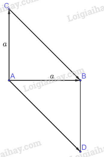 Từ A kẻ \(\overrightarrow {AD}  = \overrightarrow {CB}  \Rightarrow \widehat {CAD} = 135^\circ ;AD = BC = a\sqrt 2 \), ta có: