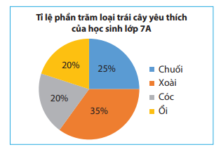 a) Biểu đồ biểu diễn các thông tin về tỉ lê phần trăm loại trái cây yêu thích của lớp 7A.