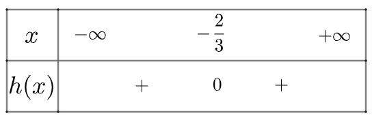 Vậy \(h\left( x \right)\) luôn dương khi \(x \ne  – \frac{2}{3}\)