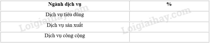 Dựa vào số liệu của biểu đồ hình 13.1 trong SGK, em hãy tính và điền vào chỗ chấm (…) của bảng dưới đây tỉ trọng của các nhóm dịch vụ tiêu dùng, dịch vụ sản xuất và dịch vụ công cộng.