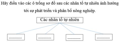 Giải bài 1 trang 20 vở bài tập Địa lí 9, Hãy điền vào các ô trống sơ đồ sau các nhân tố tự nhiên ảnh hưởng tới sự phát triển và phân bố nông nghiệp.