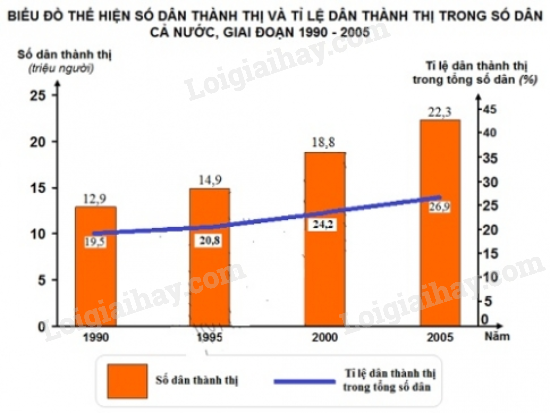 Giải bài 1 trang 29 tập bản đồ Địa lí 12, Dựa vào số liệu bảng 18.1 SGK Địa lí 12, hãy vẽ biểu đồ kết hợp (giữa đường và cột) thể hiện quá trình đô thị hóa ở nước ta.