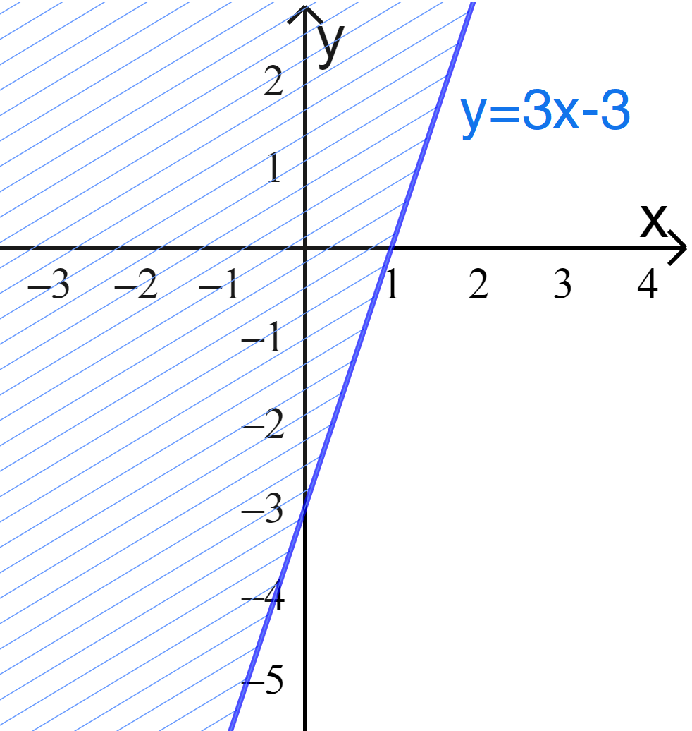 Bước 1: Vẽ đường thẳng \(d: 3x – y = 3 \Leftrightarrow y = 3x – 3\) đi qua A(0;-3) và B(1;0)