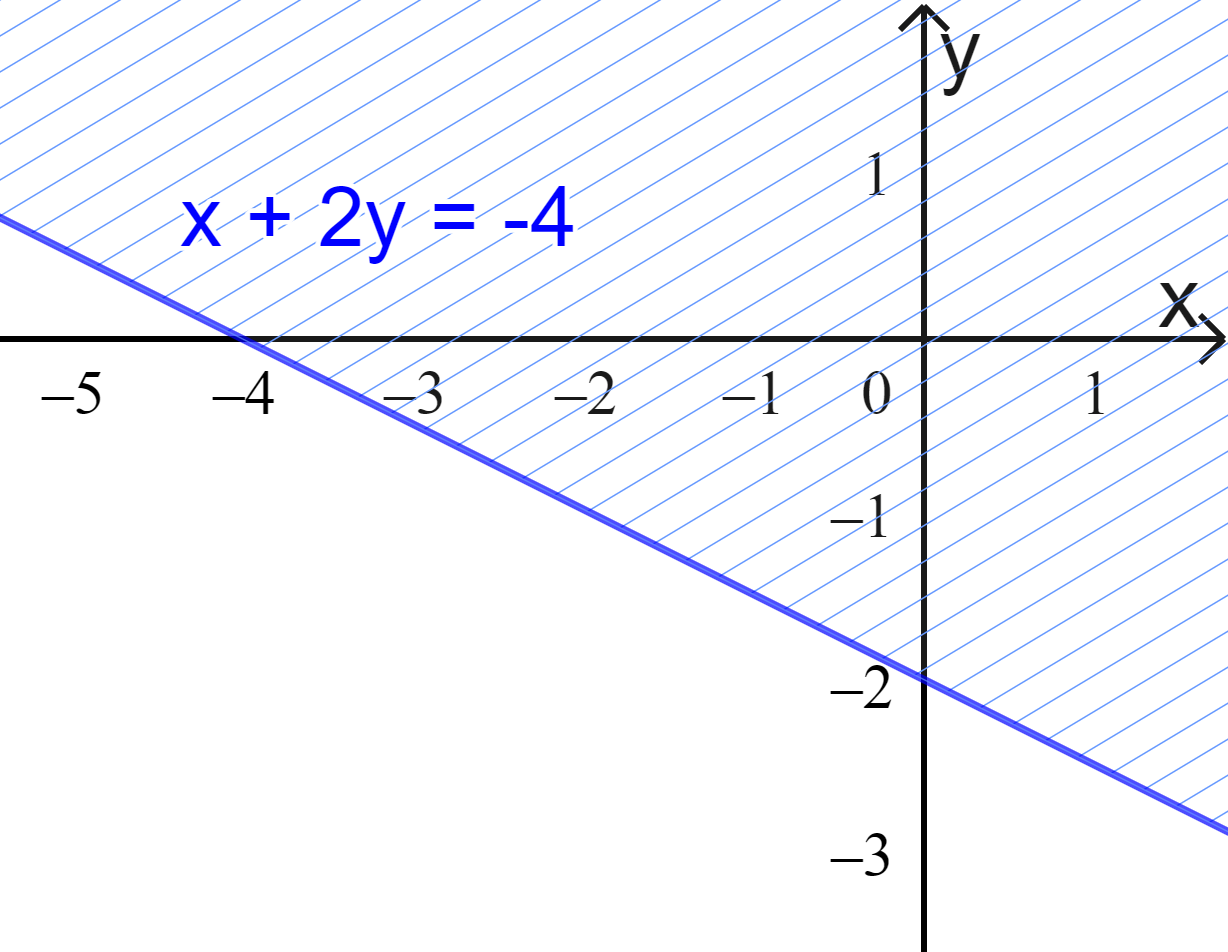 \(x + 2y \le  – 4 \Leftrightarrow 0 + 2.0 \le  – 4\)(Vô lí)