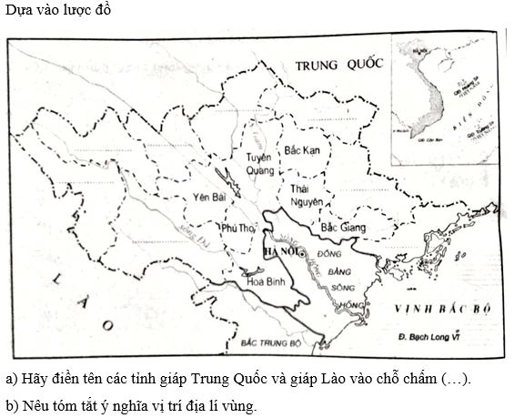 Giải bài 1 trang 42 vở bài tập Địa lí 9, Dựa vào lược đồ a) Hãy điền tên các tỉnh giáp Trung Quốc và giáp Lào vào chỗ chấm (…). b) Nêu tóm tắt ý nghĩa vị trí địa lí vùng.
